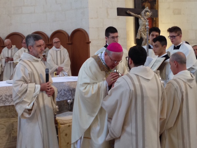 In questo contesto, mi piace sottolineare come l’incontro con Cristo ha dato un senso nuovo alla vita di alcuni nostri fratelli che in questi mesi hanno vissuto o vivranno eventi particolari. Permettete che ricordi innanzitutto il caro e indimenticato don Ciccio Ostuni, improvvisamente scomparso qualche mese fa. Dopo aver vissuto nella fede l’intima comunione di vita con Cristo, ora lo contempla, saziandosi della bellezza del Suo volto. Dal cielo, ne siamo certi, continua a stare vicino a noi, insieme alla moltitudine di pastori che ha servito la nostra Chiesa.