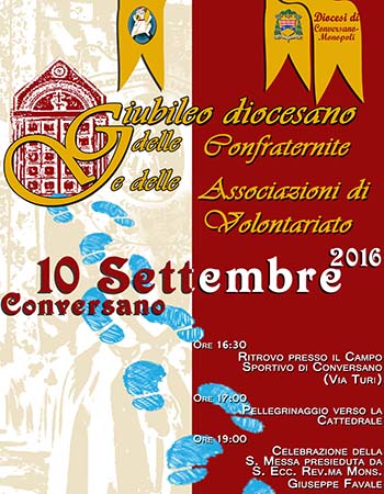 Giubileo delle Confraternite e delle Associazioni di Volontariato sabato 10 Settembre Descrizione: Incontro presso il Campo Sportivo di Conversano in Via Turi Inizio: 10/09/2016 16:30 Categorie: Agenda diocesana Organizzatore: Indirizzo: Via Turi, Conversano, BA, Italia Città: Conversano CAP: 70014 Regione: Puglia Paese: Italia Giubileo delle Confraternite e delle Associazioni di VolontariatoVia Turi, Conversano, BA, Italia 24 Luglio 201624 Luglio 2016